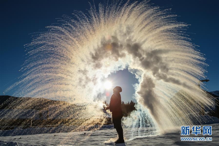 1月22日,在新疆阿勒泰地區(qū)布爾津縣禾木村,來自烏魯木齊的游客體驗“潑水成冰”。 在即將過去的2018年,各地攝影師用鏡頭記錄下四季中國。大江南北,一幅幅色彩斑斕的美麗畫卷徐徐展開。 新華社記者李京攝
