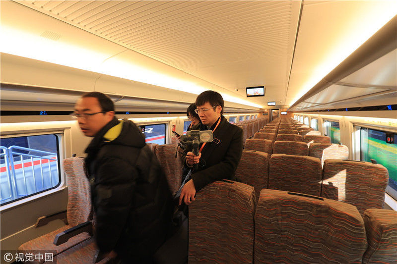 2018年12月24日,北京,中國鐵路科技創(chuàng)新成果展在國家鐵道試驗中心舉行。新型復(fù)興號動車組實車首次公開亮相,現(xiàn)場體驗乘車運行。視覺中國