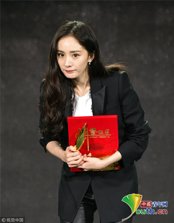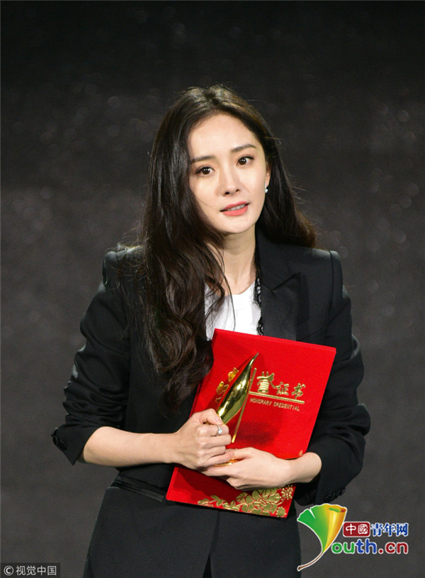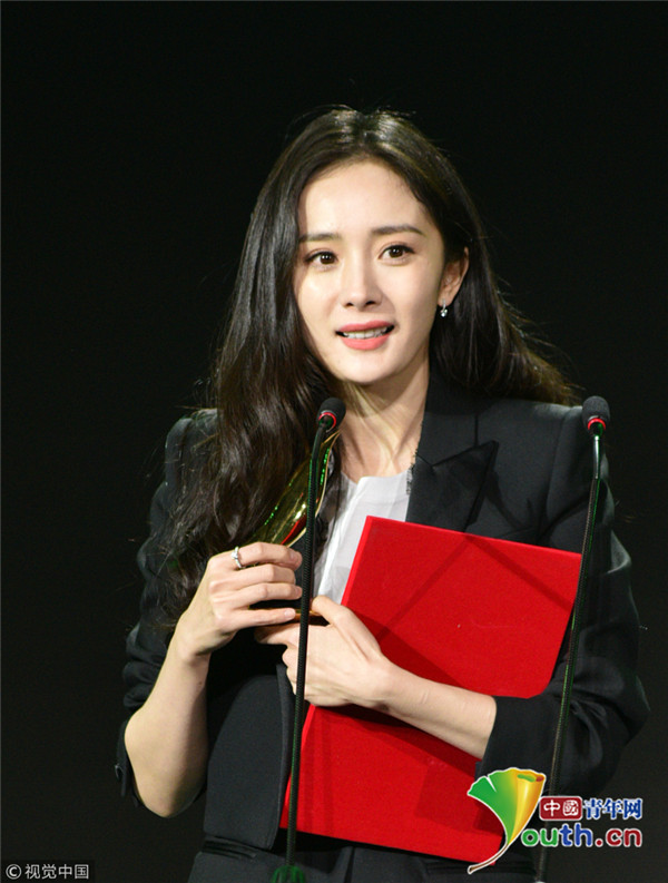 2018年12月28日,第五屆中國好演員表彰盛典頒獎(jiǎng)禮。楊冪西裝現(xiàn)身大紅唇配波浪卷精致干練,臺(tái)下端坐用厚衣服蓋腿,與工作人員悄悄交談端正舉著手顯呆萌。當(dāng)晚?xiàng)顑鐦s獲“綠寶石女演員”獎(jiǎng),上臺(tái)發(fā)表感言帥氣女強(qiáng)人范氣場(chǎng)十足。