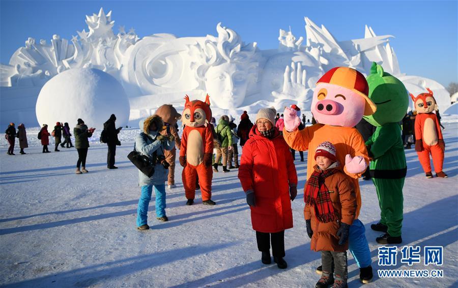 12月29日,游客在太陽島雪博會(huì)園區(qū)游玩。 當(dāng)日,第31屆哈爾濱太陽島國際雪雕藝術(shù)博覽會(huì)正式開園。本屆太陽島雪博會(huì)以“歡樂雪博會(huì)·夢幻雪域游”為主題,占地90萬平方米,分為五大景區(qū)。 新華社記者 王建威 攝