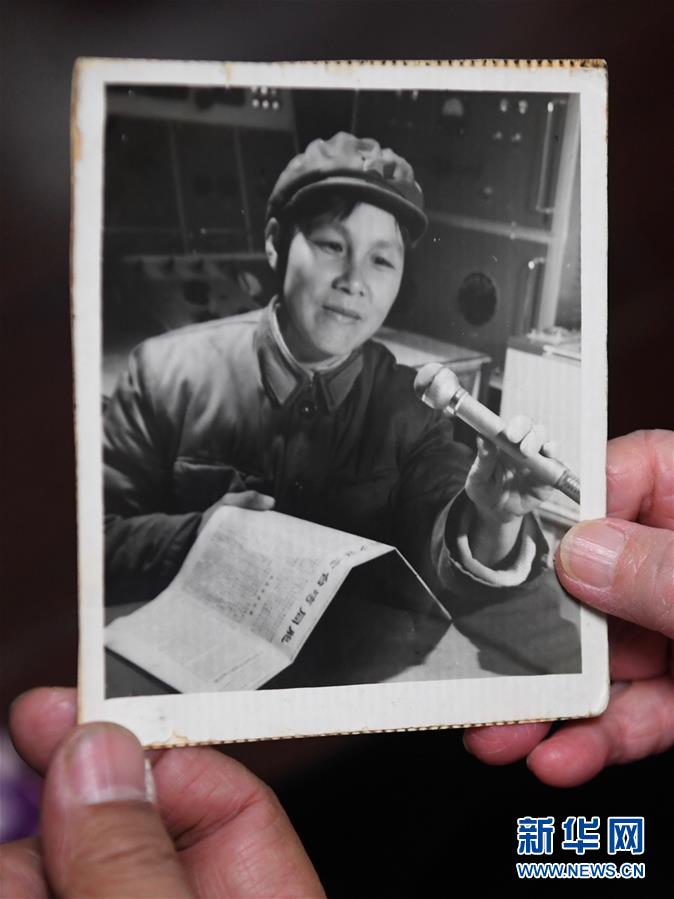 原“福建前線廣播電臺”廣播員陳菲菲當年向金門播音的老照片。  新華社記者 姜克紅 攝