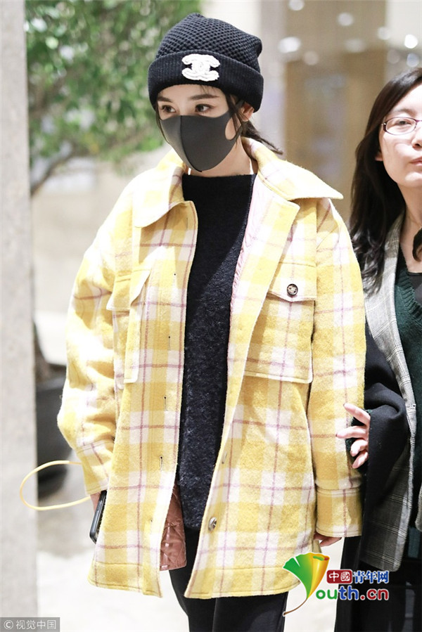 2018年1月6日,上海,楊冪現(xiàn)身某酒店。她戴著帽子口罩,身穿黑色套裝,而外面搭配的奶黃格子外套卻瞬間減齡,明亮又惹眼,無(wú)懼寒冬露著纖細(xì)腳踝,依舊是那個(gè)很會(huì)穿搭的大冪冪。