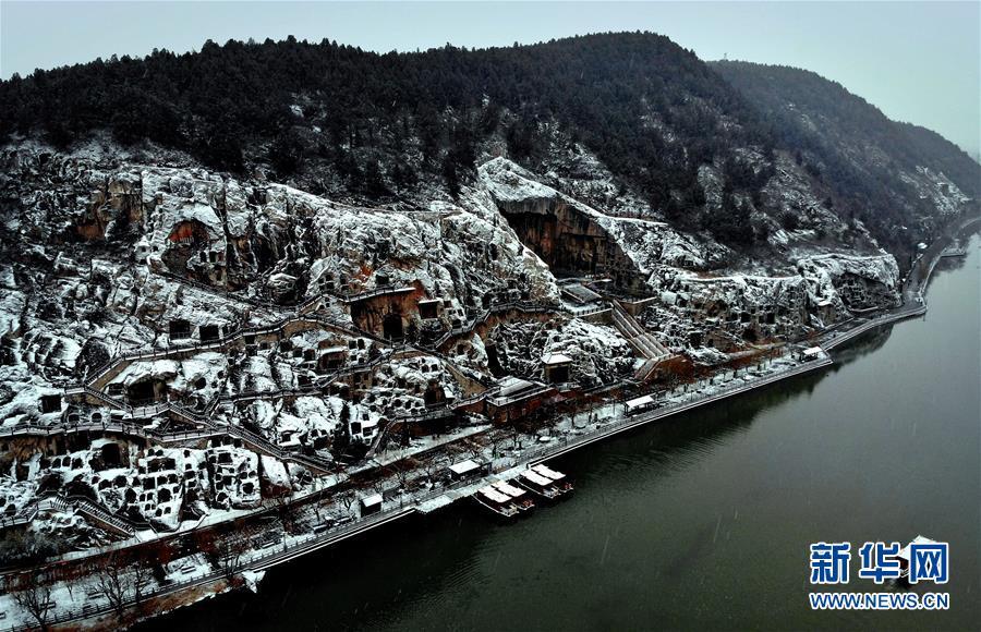 當(dāng)日,雪后的河南洛陽(yáng)龍門石窟景區(qū)銀裝素裹,一幅天然的水墨畫卷徐徐展開(kāi)。