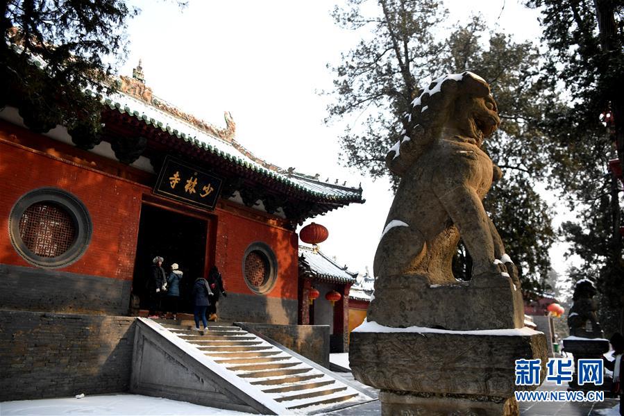 1月10日,游客在少林寺游覽。當(dāng)日,雪后初霽,河南登封少林寺分外秀美。 新華社記者 朱祥 攝
