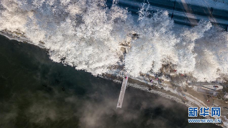 當(dāng)日,吉林省吉林市出現(xiàn)霧凇景觀,松花江畔的樹木仿佛披上了銀色盛裝。