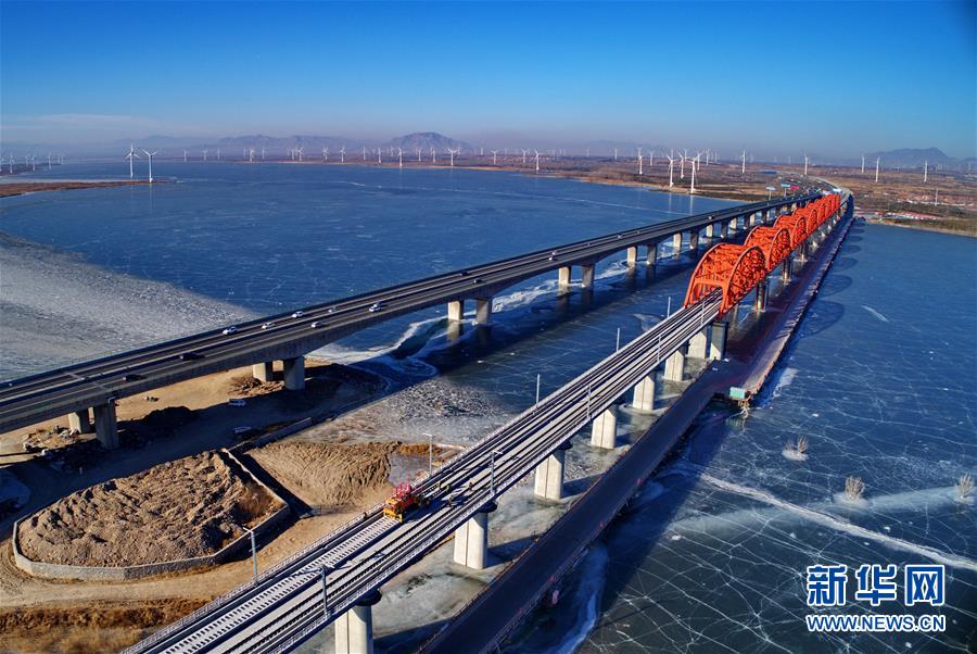 當(dāng)日,京張高鐵官廳水庫特大橋鋪軌工作完成。京張高鐵全長174公里,是2022年北京冬奧會的重要交通保障線。