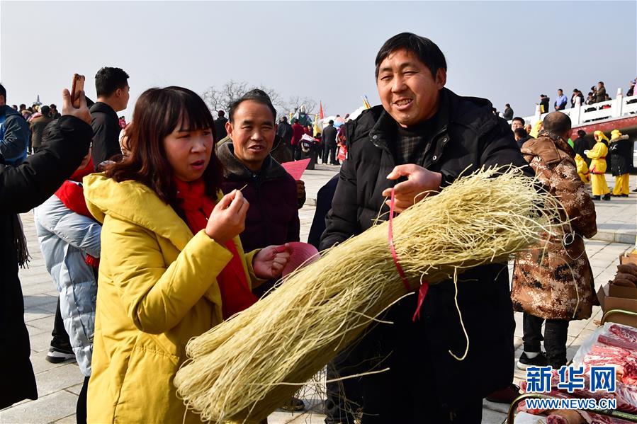 當(dāng)日,河南省魯山縣觀音寺鄉(xiāng)西桐樹莊村土特產(chǎn)年貨展銷活動在河南魯山阿婆寨風(fēng)景區(qū)門口舉行。近年來,依托鄉(xiāng)村旅游的不斷發(fā)展,不少貧困山村特產(chǎn)走出大山。