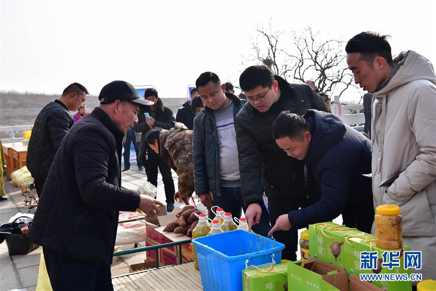 當(dāng)日,河南省魯山縣觀音寺鄉(xiāng)西桐樹莊村土特產(chǎn)年貨展銷活動(dòng)在河南魯山阿婆寨風(fēng)景區(qū)門口舉行。近年來(lái),依托鄉(xiāng)村旅游的不斷發(fā)展,不少貧困山村特產(chǎn)走出大山。