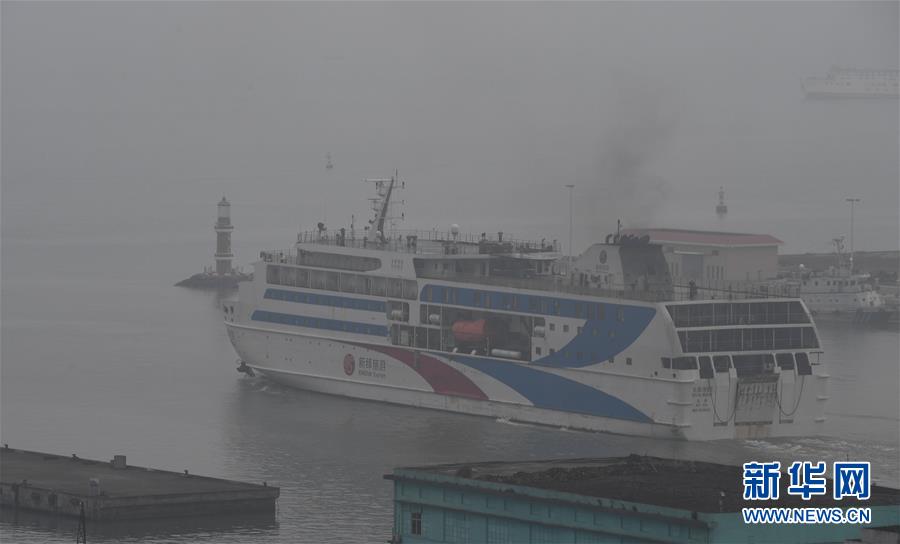 1月13日,一艘客滾船從海口秀英港駛出。 新華社記者楊冠宇攝