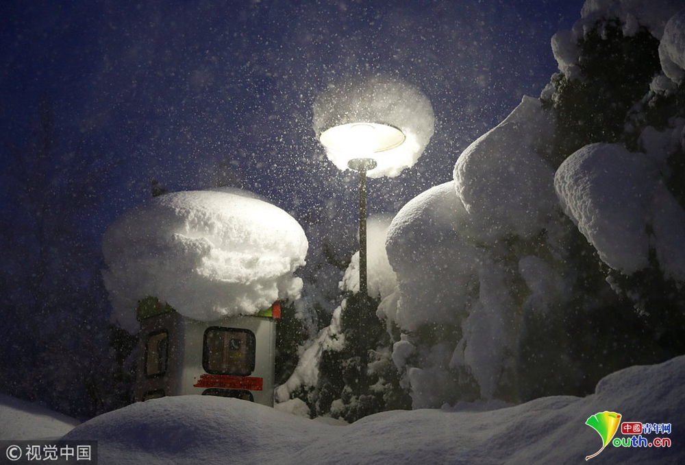 奧地利暴風(fēng)雪持續(xù) 公交車站被積雪掩埋