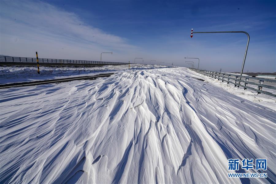 1月15日,在新疆瑪依塔斯風區(qū)內(nèi),大風將白雪吹到公路上。 瑪依塔斯風區(qū)位于新疆西北部額敏縣境內(nèi)。這里東西風交替頻繁,一年大風天數(shù)超過150天,是世界上罕見的暴風雪災害地段。駐守在這里的新疆塔城公路管理局額敏分局瑪依塔斯應急保障基地,近年來連續(xù)裝備拋雪機等冰雪搶險救災裝備,有力地保障了這條道路的交通安全。 新華社記者趙戈攝