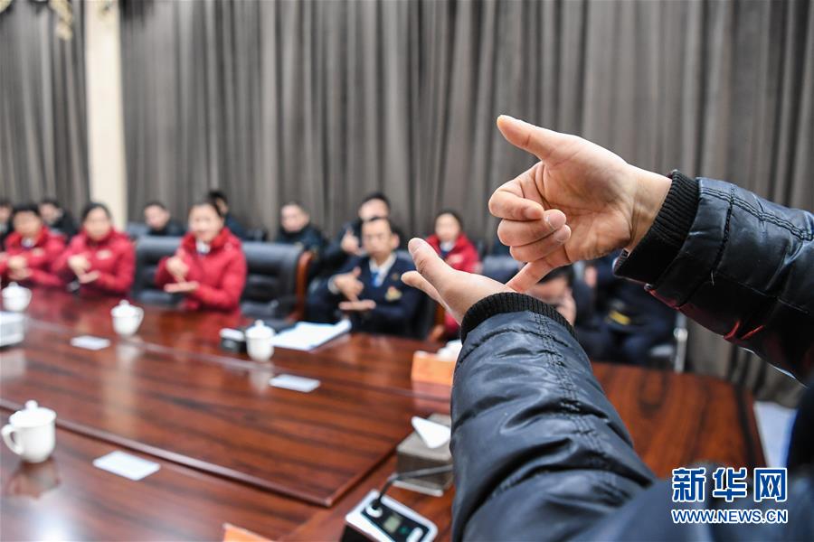1月16日,指導(dǎo)老師在對(duì)鶴壁東站的職工進(jìn)行手語(yǔ)培訓(xùn)。 當(dāng)日,中國(guó)鐵路鄭州局集團(tuán)有限公司新鄉(xiāng)車務(wù)段鶴壁東站組織職工開(kāi)展服務(wù)禮儀、手語(yǔ)等業(yè)務(wù)培訓(xùn),并進(jìn)行非正常情況應(yīng)急演練,為2019年春運(yùn)做準(zhǔn)備。 新華社記者李安攝