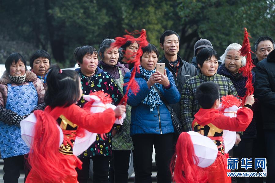 1月16日,新塘村村民觀看傳統(tǒng)非遺項(xiàng)目——下箬馬燈。下箬馬燈是發(fā)源于長(zhǎng)興縣的民間舞蹈,距今已有1000多年歷史。 臨近春節(jié),浙江省長(zhǎng)興縣開(kāi)發(fā)區(qū)中心幼兒園的老師和孩子們來(lái)到長(zhǎng)興縣太湖街道下屬的新塘村,為村民表演文藝節(jié)目,用喜慶的傳統(tǒng)舞蹈營(yíng)造節(jié)日氣氛。另外孩子們還用紙盒、瓶子、彩色包裝紙等廢舊物品制作了環(huán)?;簦徒o村民,倡導(dǎo)低碳環(huán)保的節(jié)日新風(fēng)。 新華社記者 徐昱 攝