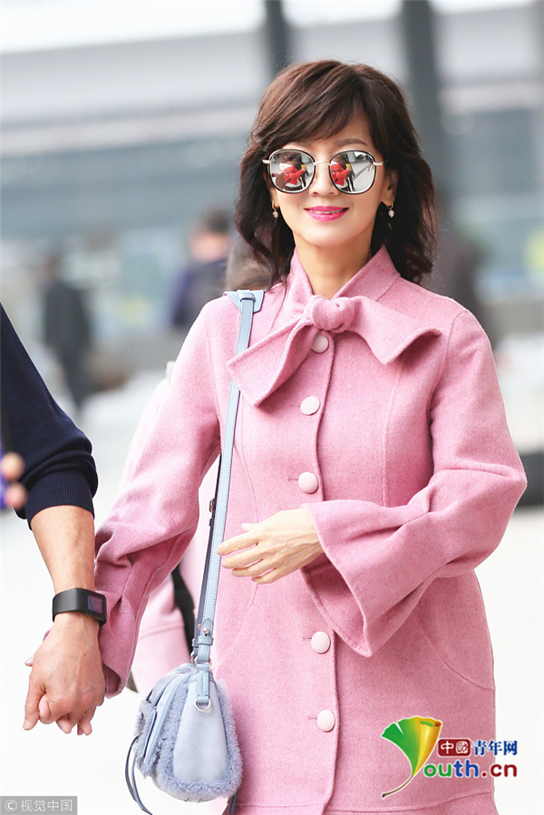 1月22日,廣東深圳,近日,趙雅芝與丈夫黃錦燊現(xiàn)身機場,黑超遮面的她身著粉色昵子魚尾大衣,氣質(zhì)超群,一路獲粉絲跟隨,共先生黃錦燊牽手同行。