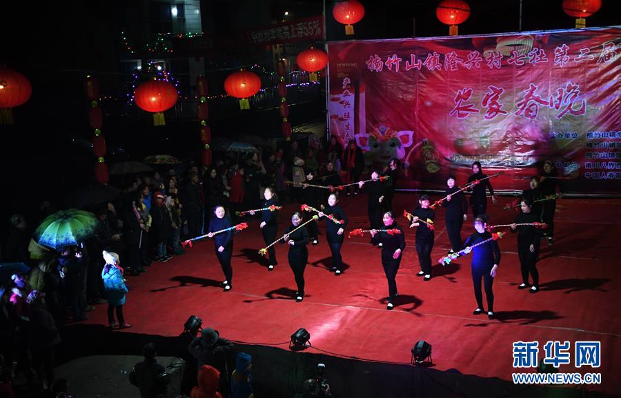 1月31日,隆興村七社村民在“農家春晚”上表演打蓮簫。 當日,重慶市南川區(qū)楠竹山鎮(zhèn)隆興村七社舉辦“農家春晚”。晚會節(jié)目大多由隆興村七社村民自導自演,吸引本村及周邊的眾多群眾前來觀賞,共同迎接新春佳節(jié)。 新華社記者 王全超 攝