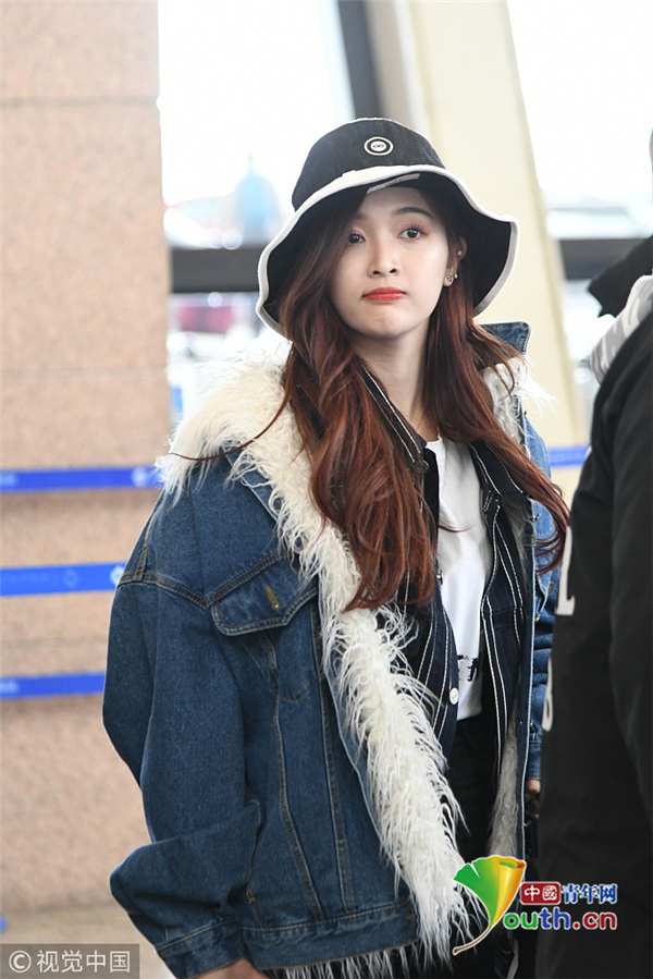 2月2日,上海,吳宣儀頭戴帽子身穿一襲牛仔服現(xiàn)身機(jī)場(chǎng) 。她自提大包回家過(guò)年 ,獲粉絲拜年祝福 ,吐舌狂賣(mài)萌。