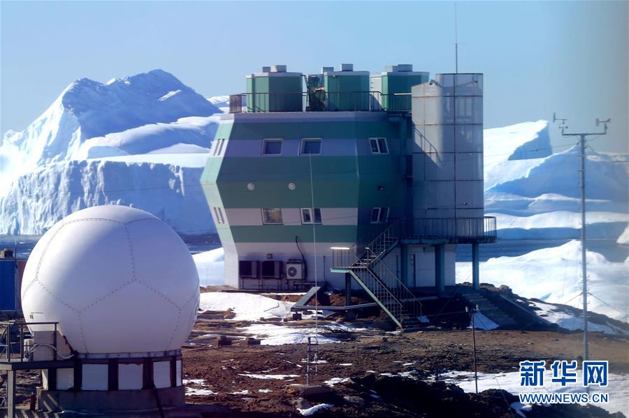 這是中山站標(biāo)志性建筑“六角樓”附近的冰山群(2月14日攝)。新華社記者 劉詩平 攝