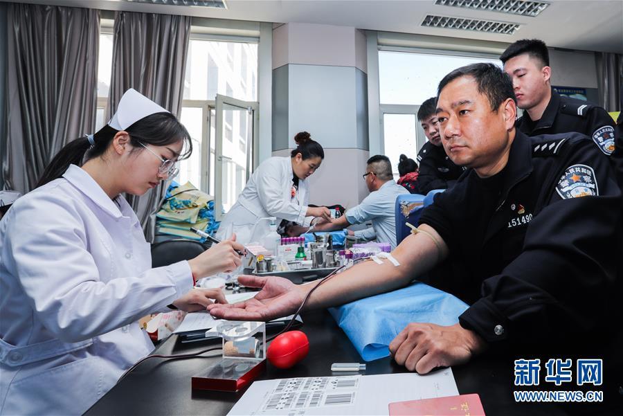 2月24日,在錫林郭勒盟中心血站,內(nèi)蒙古錫林郭勒邊境管理支隊民警在獻血。 內(nèi)蒙古自治區(qū)錫林郭勒盟“2·23”重大事故傷者正在錫林郭勒盟醫(yī)院、錫林郭勒盟蒙醫(yī)醫(yī)院接受救治。因用血需求量大,當?shù)匮獛鞄齑嬉欢鹊陀诰渚€。在當?shù)卣h下,各單位職工、市民紛紛前往錫林郭勒盟中心血站獻血。截至24日16時,已有220余名志愿者完成獻血,采集全血6.8萬毫升,機采血小板9個治療量。 新華社記者 劉懿德 攝