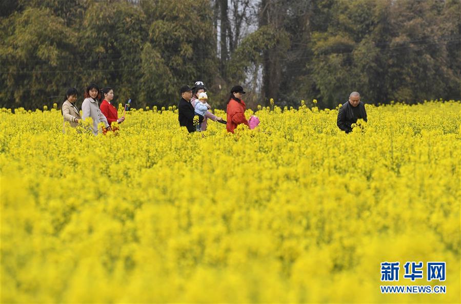 3月6日,游人在四川廣漢市西高鎮(zhèn)油菜花田里游玩。