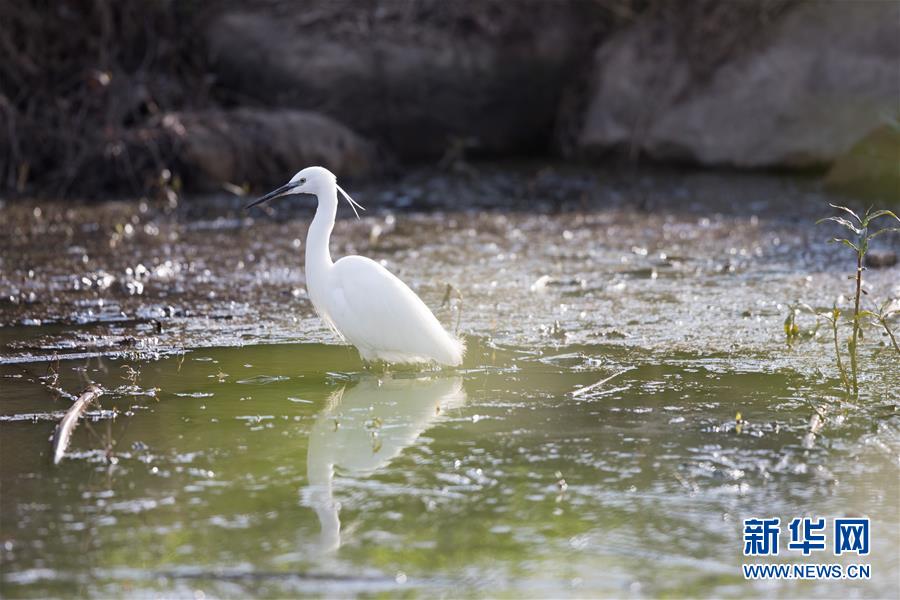 3月7日,在以色列阿格蒙胡拉鳥(niǎo)類和自然公園,一只白鷺在覓食。新華社記者郭昱攝