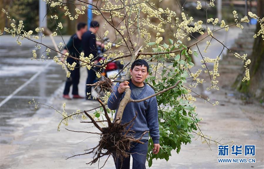 在黔桂烏英苗寨,村民勞作歸來(3月19日攝)。
