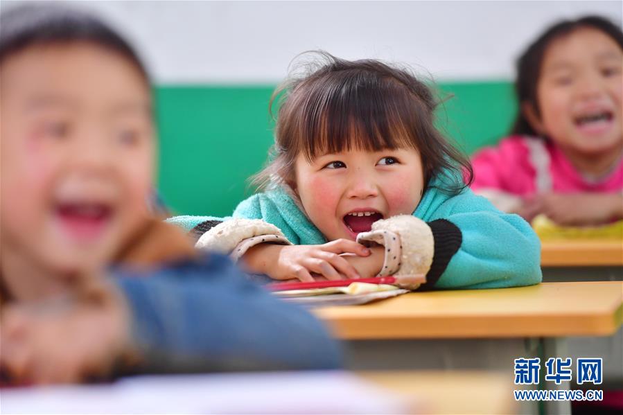 在黔桂烏英苗寨,孩子們?cè)趯W(xué)校里上課(3月27日攝)。