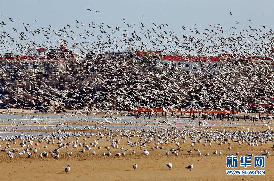 4月4日,一群候鳥在秦皇島市沿海濕地飛翔、休憩。近日,大批候鳥飛抵河北省秦皇島市沿海濕地,出現(xiàn)“萬鳥臨海”奇觀。秦皇島沿海濕地鳥類食物豐富,每年春、秋兩季,大批候鳥遷徙經過這里。新華社記者 楊世堯 攝