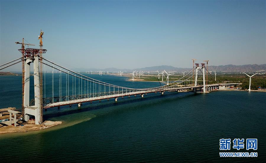 建設(shè)中的官?gòu)d水庫(kù)公路大橋(5月6日無(wú)人機(jī)拍攝)。 河北省懷來(lái)縣官?gòu)d水庫(kù)公路大橋是懷來(lái)沙城至東花園公路的節(jié)點(diǎn)工程,預(yù)計(jì)該橋?qū)⒂?019年6月竣工。 新華社記者 楊世堯 攝
