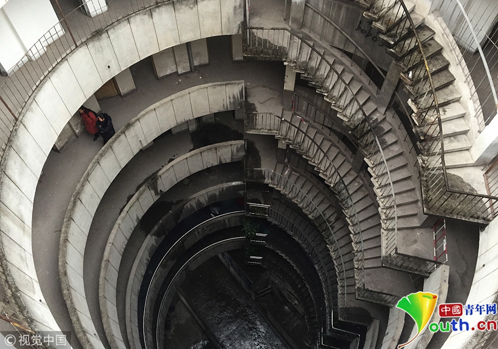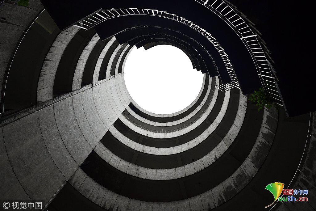 2018年12月11日,重慶紅旗河溝汽車站辦公大樓。八層的圓筒型轉(zhuǎn)轉(zhuǎn)樓,站在樓里往上望,可以看見(jiàn)碗口大的天空。圖片作者:尋常