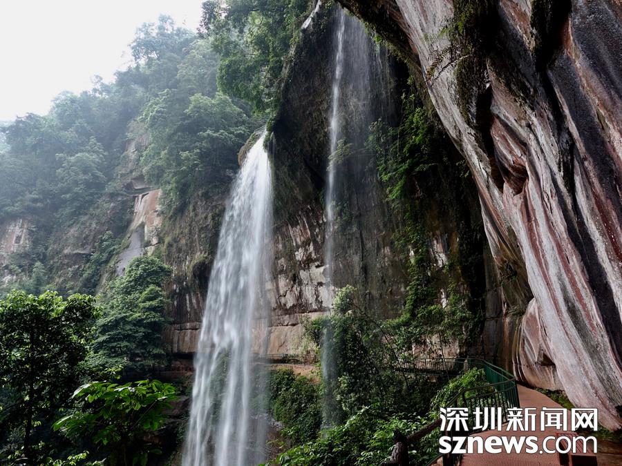 走進(jìn)赤水丹霞旅游區(qū),艷麗鮮紅的丹霞赤壁,拔地而起的孤峰窄脊,儀態(tài)萬(wàn)千的奇山異石,巨大的巖廊洞穴和優(yōu)美的丹霞峽谷與綠色森林、飛瀑流泉相映成趣,具有極高的觀賞價(jià)值,令人傾倒。李仁奇  攝