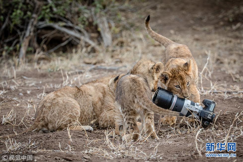 近日,非洲博茨瓦納馬沙圖野生動(dòng)物保護(hù)區(qū)內(nèi)一頭獅子叼起攝影師掉落在地上的相機(jī),之后還將相機(jī)交給小獅子們玩耍,看起來(lái)十分好奇,而攝影師非常無(wú)奈?,F(xiàn)年57歲的叢林探險(xiǎn)家Barbara Jensen Vorster在一輛越野車上為馬沙圖野生動(dòng)物保護(hù)區(qū)的獅群拍照時(shí),相機(jī)不小心掉到了地上。砰的一聲響驚動(dòng)了母獅子,它向攝影師方向移動(dòng),迫使探險(xiǎn)隊(duì)撤退。(圖片來(lái)源:視覺中國(guó))