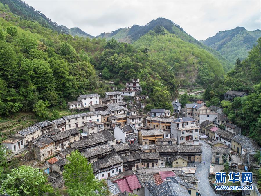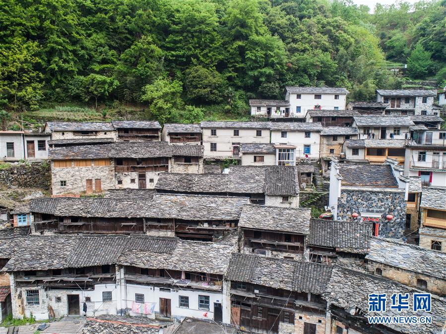 掩映在大山之中的石板房古村落,人去房空(8月7日無(wú)人機(jī)拍攝)。 新華社記者陶明攝
