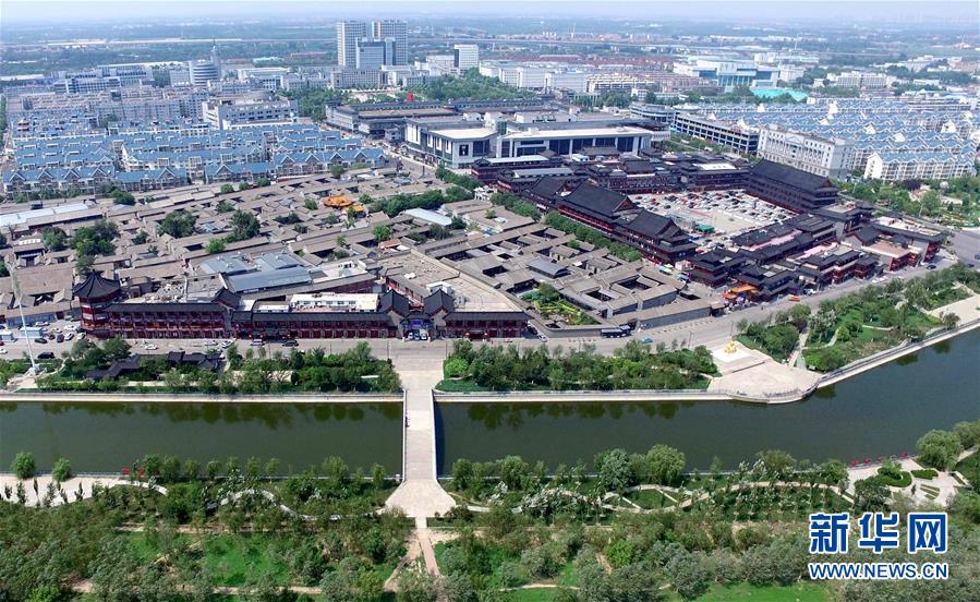 南運(yùn)河北側(cè)的石家大院遺址、仿古建筑群與運(yùn)河形成天津楊柳青古鎮(zhèn)運(yùn)河景觀(2017年7月13日無(wú)人機(jī)拍攝)。 運(yùn)河穿城過(guò),古鎮(zhèn)草色新,千年畫鄉(xiāng)楊柳青自傳統(tǒng)中浸潤(rùn)出與眾不同的顏色。40年斗轉(zhuǎn)星移,這個(gè)沉淀千年的小鎮(zhèn),用別樣的風(fēng)姿講述了一個(gè)歷史與現(xiàn)在碰撞而出的改革“新”故事。 新華社記者岳月偉攝