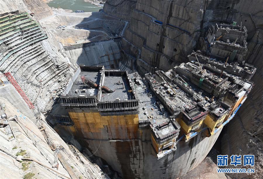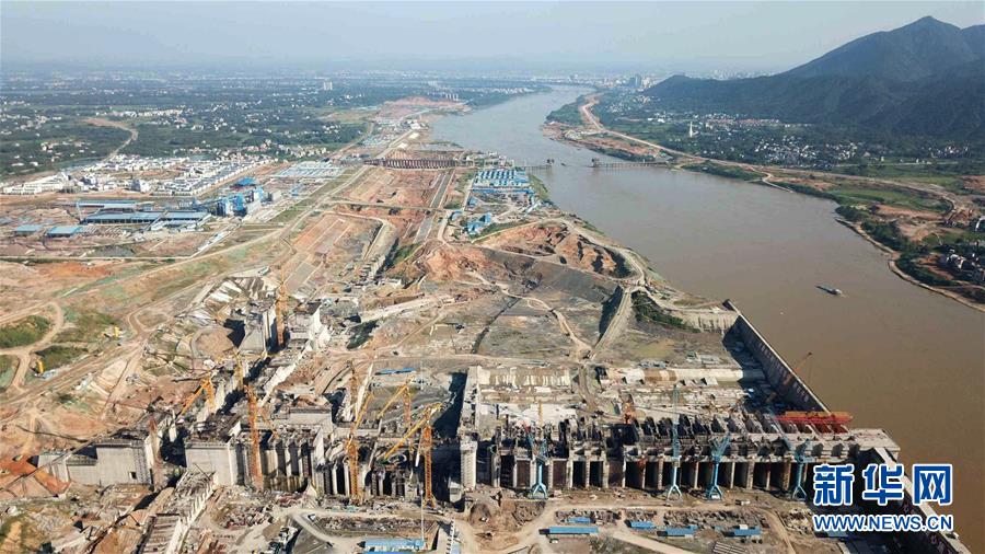 這是用無(wú)人機(jī)拍攝的建設(shè)中的烏東德水電站全景(5月30日攝)。 新華社記者陳曄華攝