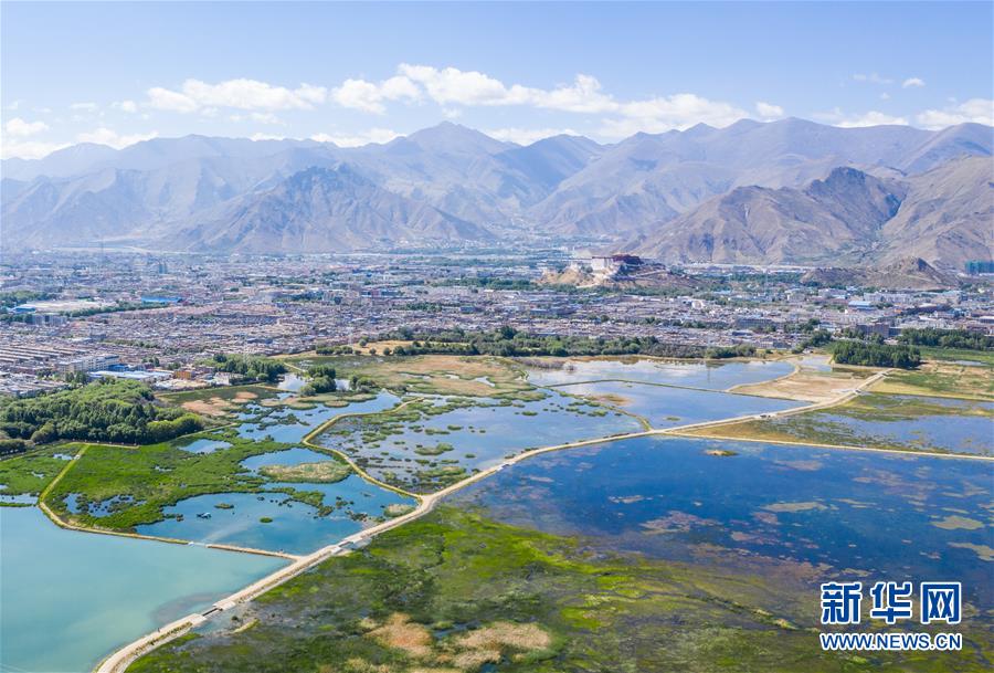 被譽(yù)為“拉薩之肺”的拉魯濕地(6月5日無人機(jī)拍攝)。