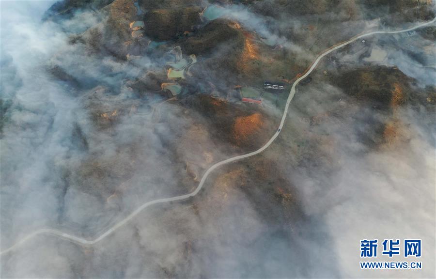 這是融水苗族自治縣桿洞鄉(xiāng)堯告村的村屯公路(1月5日無人機(jī)拍攝)。新華社記者 黃孝邦 攝