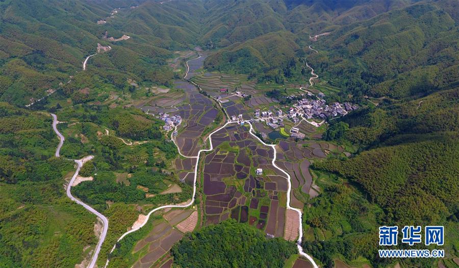 這是融水苗族自治縣桿洞鄉(xiāng)黨鳩村烏英苗寨的公路(4月18日無人機(jī)拍攝)。新華社記者 黃孝邦 攝