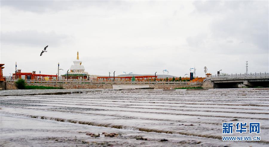 7月6日,在青海省剛察縣沙柳河上空,幾只棕頭鷗在河面上飛翔。 新華社記者 吳剛攝