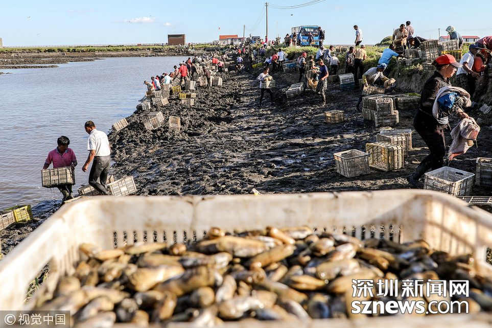 時下正是沿海地區(qū)海蟶收獲的季節(jié),在江蘇連云港海邊的灘涂上,漁民們將收獲的海蟶裝箱外運,一片忙碌。