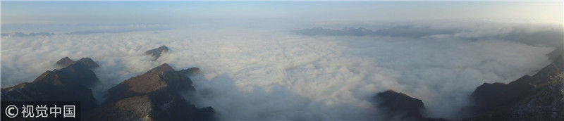 2019年3月3日,陜西商洛,位于鎮(zhèn)安縣的塔云山景區(qū)云海翻騰,宛如仙境。袁景智/視覺中國 編輯/陳進