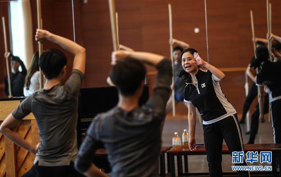 7月9日,遼寧芭蕾舞團(tuán)團(tuán)長曲滋嬌在指導(dǎo)演員進(jìn)行芭蕾舞劇《花木蘭》的排練。新華社記者 潘昱龍 攝