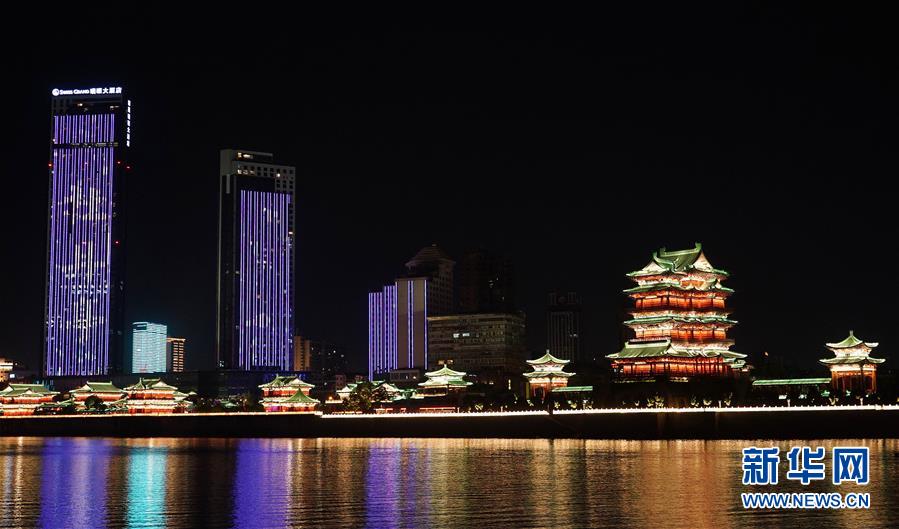 這是江西南昌贛江畔上演的燈光秀(8月6日攝)。 新華社記者 萬象 攝