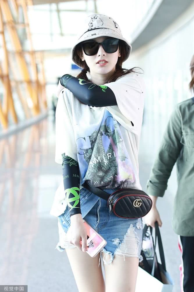 內(nèi)地女星彭小苒現(xiàn)身機(jī)場(chǎng),穿印花T恤牛仔短褲,白色馬丁靴很時(shí)髦
