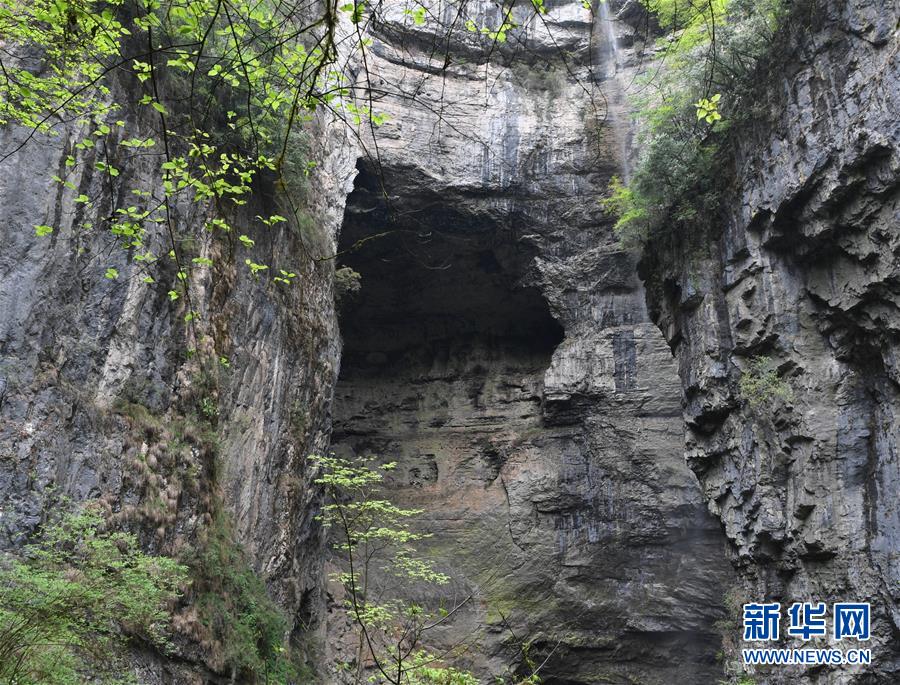 地洞河天坑的巖壁。位于陜西省漢中市寧強(qiáng)縣的地洞河天坑,是禪家?guī)r天坑群中規(guī)模最大的一處天坑,坑內(nèi)分布有石鐘乳、石筍,具有極高的地質(zhì)研究價(jià)值。新華社 張博文 攝