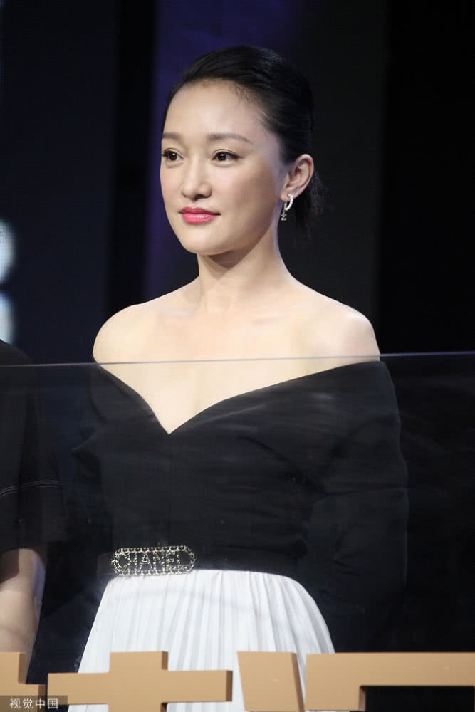 周迅一身黑白look。