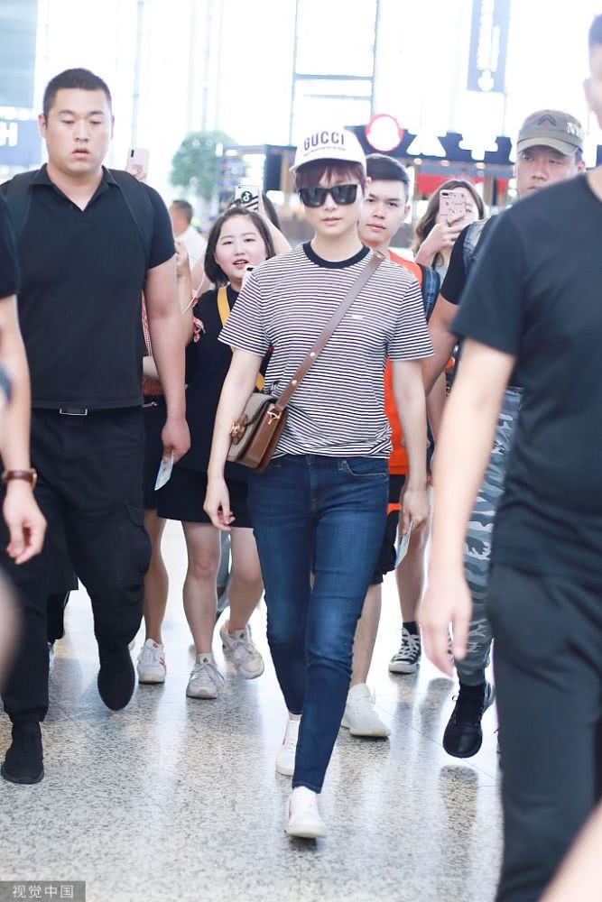 李宇春條紋裝扮現(xiàn)身機(jī)場(chǎng),青春活力,人氣爆棚