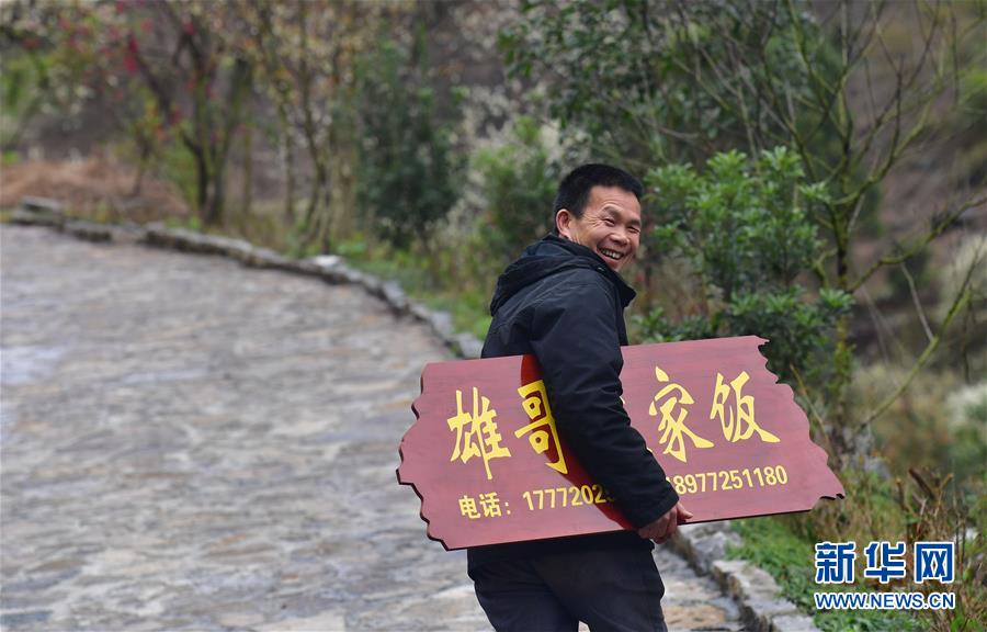 龍革雄在領(lǐng)取農(nóng)家樂(lè)牌匾(3月5日攝)。 新華社記者 黃孝邦 攝
