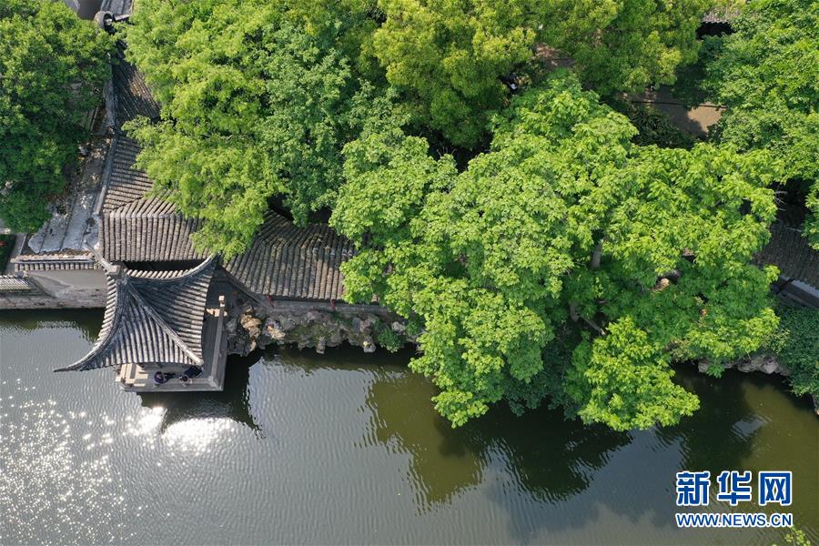 這是無人機(jī)拍攝的蘇州滄浪亭景色(5月10日攝)。 新華社記者 季春鵬 攝