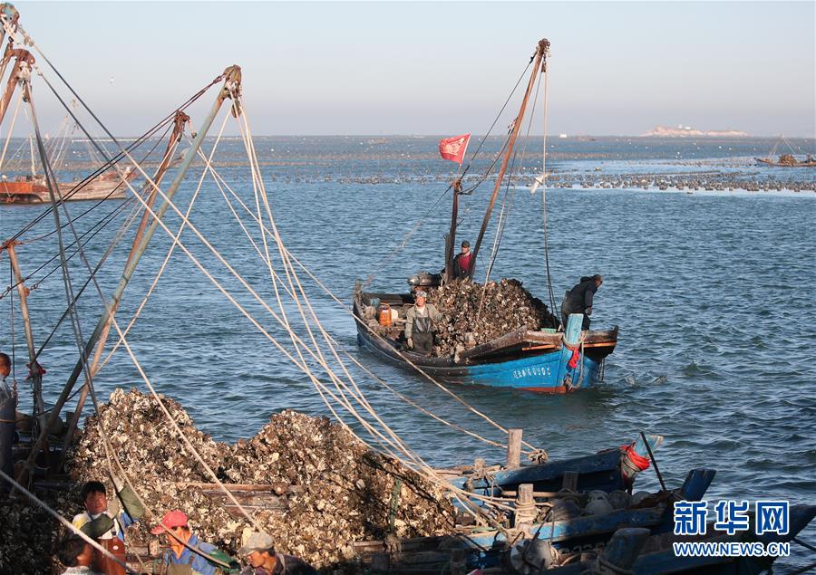 當(dāng)日,在遼寧省大連市長(zhǎng)??h廣鹿島海域,漁民忙碌地打撈牡蠣,呈現(xiàn)一片繁忙的豐收景象。近年來(lái),大連市持續(xù)加強(qiáng)海洋牧場(chǎng)建設(shè),目前已累計(jì)建設(shè)海洋牧場(chǎng)約36萬(wàn)公頃,投放各類(lèi)魚(yú)礁約1578萬(wàn)平方米,建立國(guó)家級(jí)海洋牧場(chǎng)示范區(qū)14處。