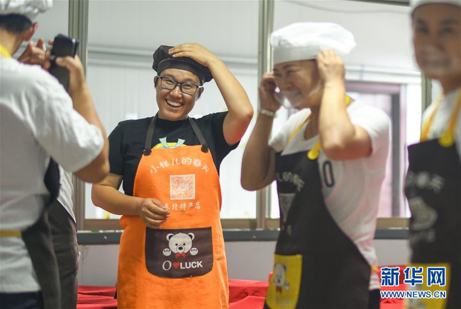 李琛璨(左二)與工人在生產(chǎn)車間準備查看醬缸中的大醬發(fā)酵情況(8月29日攝)。 新華社記者 王松 攝